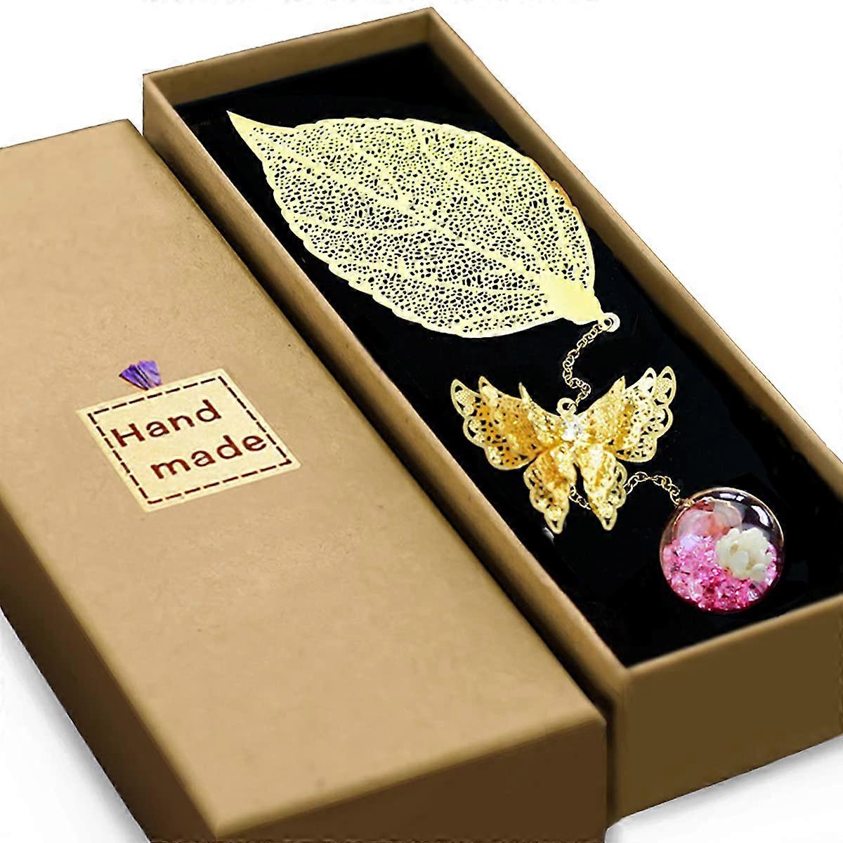 LINJOU Metal Leaf Bookmark Unique Gift ,Butterfly Bookmarks(Golden.pink)