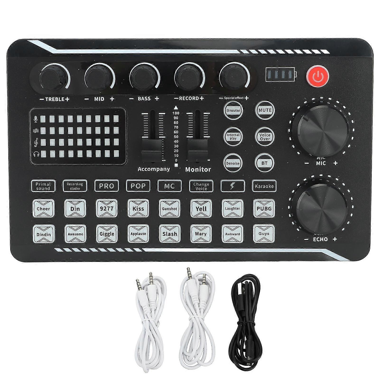 Live Sound Card Mixer Microphone Audio Interface Streaming Podcast Gaming with Built-In Rechargeable Battery Multichannel Adjustable Treble Bass Echo