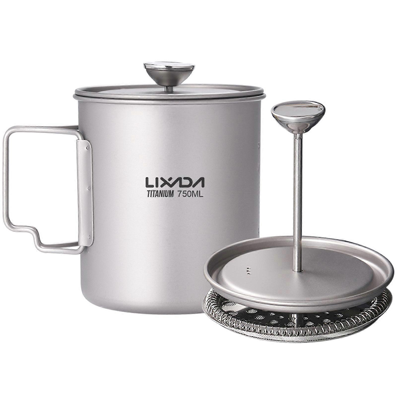 Lixada 750ml Titanium Coffee Cup Mug French Press Pot Coffee Maker with Lid Outdoor Camping Cooking Pot