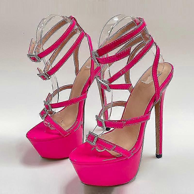 Liyke Runway Style Sexy High Heels Platform Sandals For Women Fashion Open Toe Crystal Buckle Stiletto Wedding Stripper Shoes