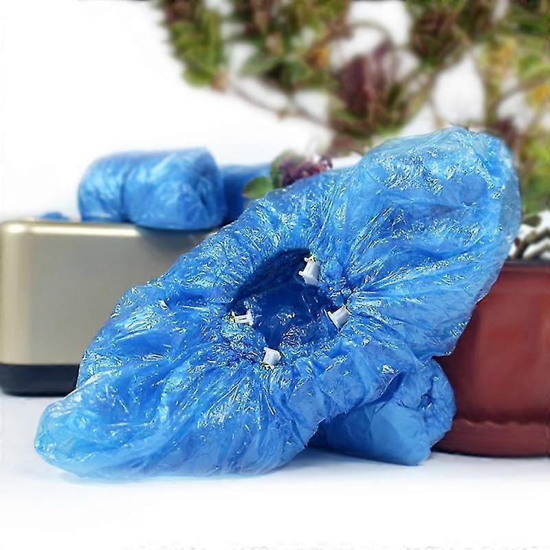 Stay flexible Material: PE/polyethylene Packing list: 100 disposable shoe covers. We only sell disposable shoe covers, not other items in the picture. Due to the difference between different monitors, the pictures may not reflect the actual color of the item. Due to manual measurement, please allow slight errors in size.