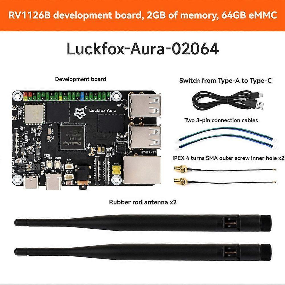 Luckfox Aura Linux Development Board Based on RV1126B, 3 TOPS Computing Power 4K Encoding and Decoding 64GB EMMC 2GB RAM