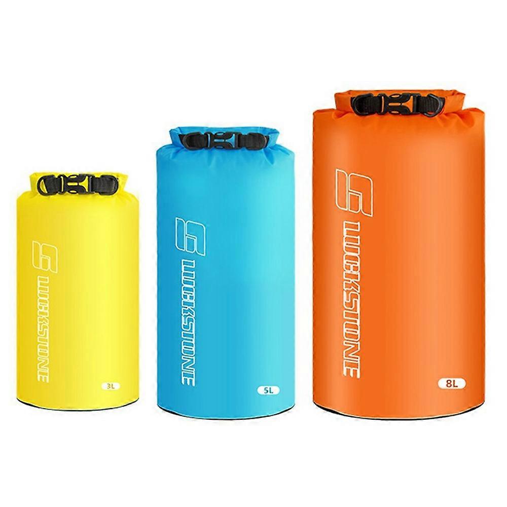 LUCKSTONE 3Pcs Set 3L 5L 8L Outdoor Waterproof Dry Bag Lightweight Storage Bag for Camping Boating