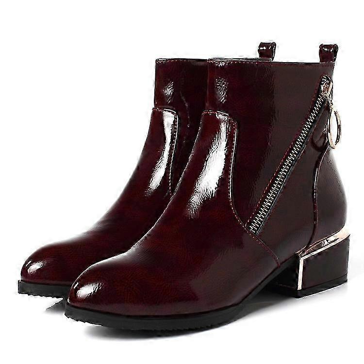 Luxora Autumn Winter Women Sexy Pointed Toe Zipper High Heel Boots Black Blue Wine Red Patent Leather Ankle Boots