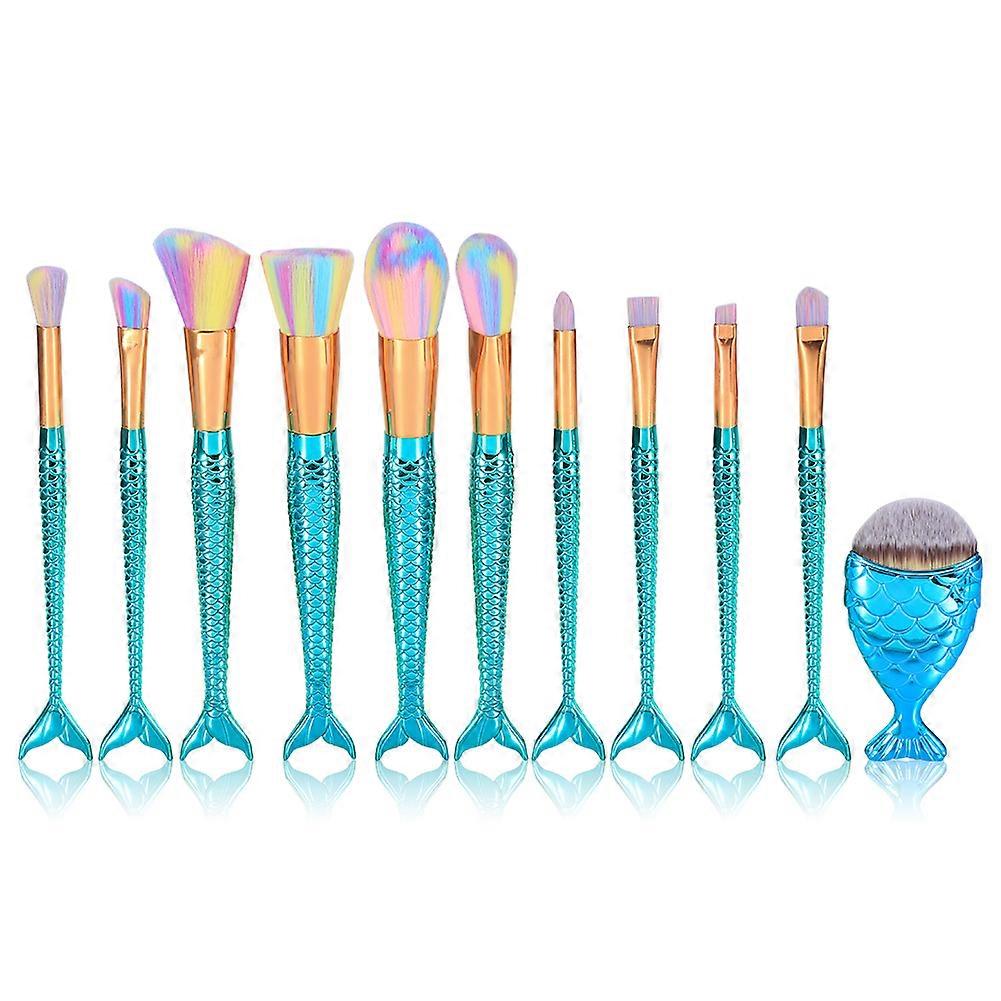MAANGE 11Pcs/Set Foundation Cosmetic Brushes Eyebrow Powder Blending Makeup Brush Kit Green