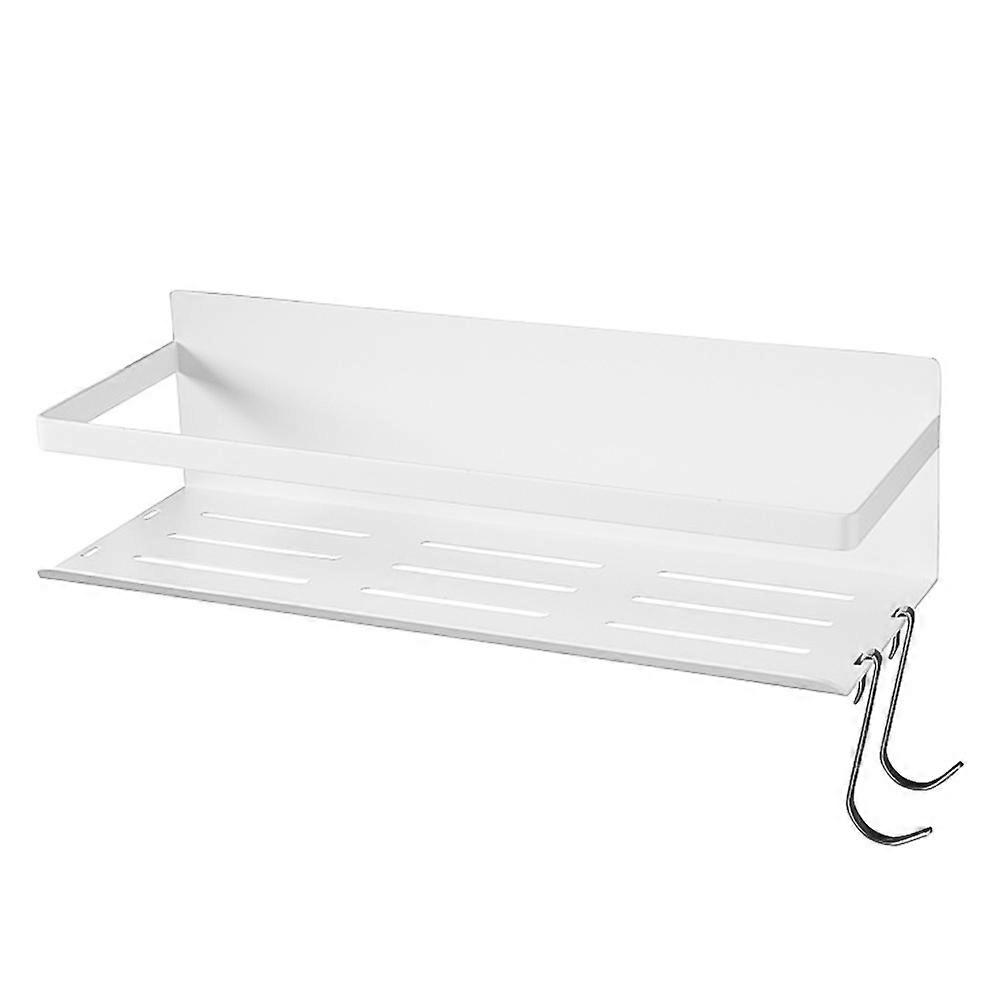 Description If you've been looking for a magnetic fridge organizer, then your search is over! That's because our product is magnetic, doesnt require drilling or tools to install, keep your wall free of hole. Features -Color:Black -Material: iron -Size: 30.00X10.00X8.00cm/11.79X3.93X3.14in - Perfect for organizing bathroom and kitchen shampoos, conditioners, towels, loofah, bathrobes, kitchen tools, etc. - The self-adhesive shower room holder with open grid design can maximize ventilation and draining water to keep your storage products clean. The overall design is simple and generous - Suitable for shampoo, conditioner or other seasoning bottles at home to keep the kitchen or bathroom tidy. There are also hooks for hanging sponges, bath balls, razors and corkscrews. - Not leaving any traces on the refrigerator or washing machine, it can be reused after washing and drying. There is no drilling or wall damage. - There is no need for self-adhesive pads and stickers, and the magnetic design is convenient and tidy, making your kitchen beautiful and clean.Package List1 x magnetic shelf