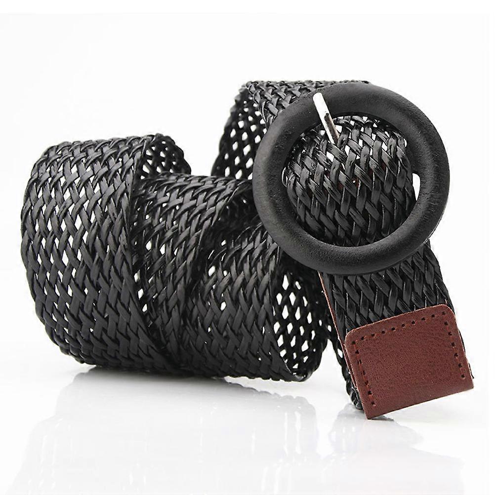 Masteelf 2PCS Ethnic Style Round Buckle Fashion Waist Belt Weaving Waistband for Women Dresses Jeans Black Khaki