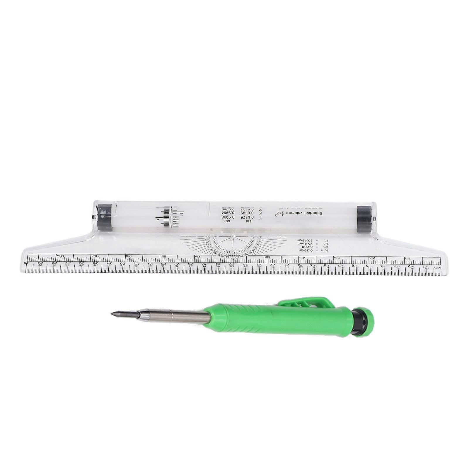 1、Wide Range of Uses: Universal measuring ruler can draw the desired figure with protractor, you can draw arc curves, horizontal and vertical parallel lines, the size is enough to draw. 2、Design Details: One round hole per centimeter exist on this measuring roller ruler, convenient for drawing circles and ellipses. 3、Various Formulas: There are various formulas on the roller, which can be quickly calculated in use, which is a good helper for you to work or study. 4、With Roller: The built in roller of this drawing ruler can slide freely, the drawing is stable, and is not easy to skew, with clear scale, easy to observe. 5、Transparent Body: Our ruler is made of transparent plastic, light weight, easy to carry, transparent feature allows you to paint without ignoring some important numbers or words. Item Type: Measuring Rolling Ruler Material: Plastic Measurement Size: Approx. 30cm/11.8in 1 x Measuring Rolling Ruler 1 x Woodworking Pen (Random Color)
