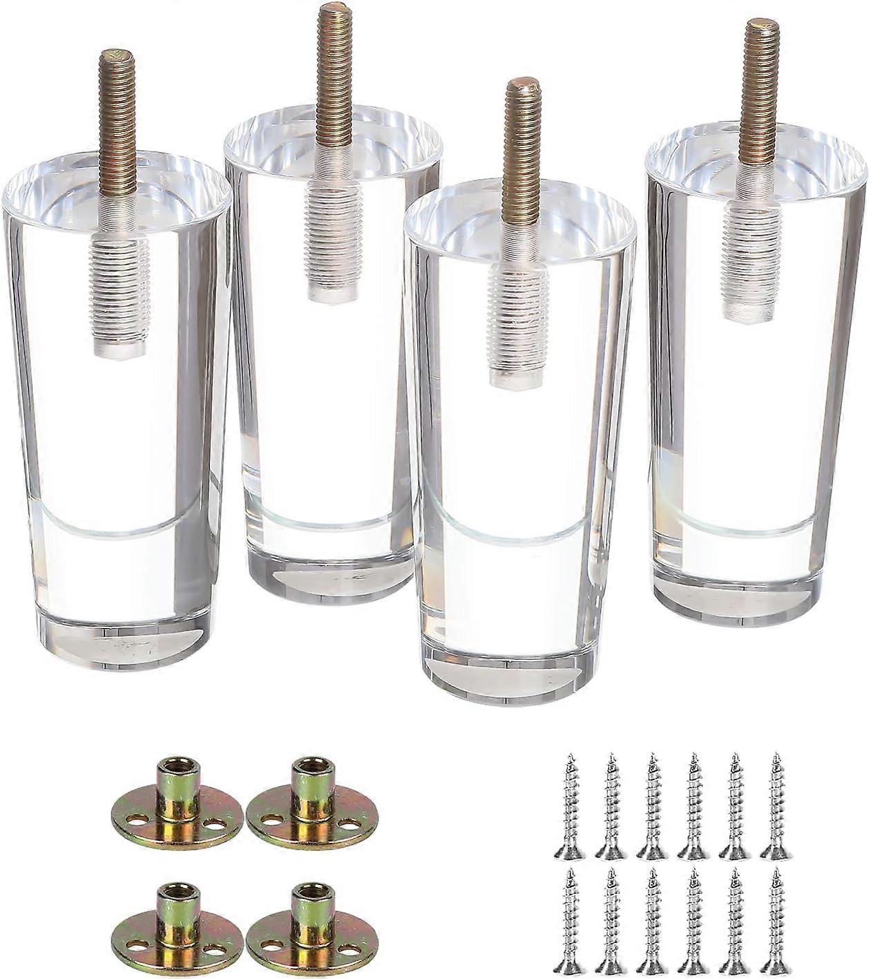 MEETWARM 4" Height Clear Acrylic Sofa Legs Round Replacement Lucite Furniture Legs for Cabinet Dressser Couch Ottoman Footstool TV Stand Home DIY Legs