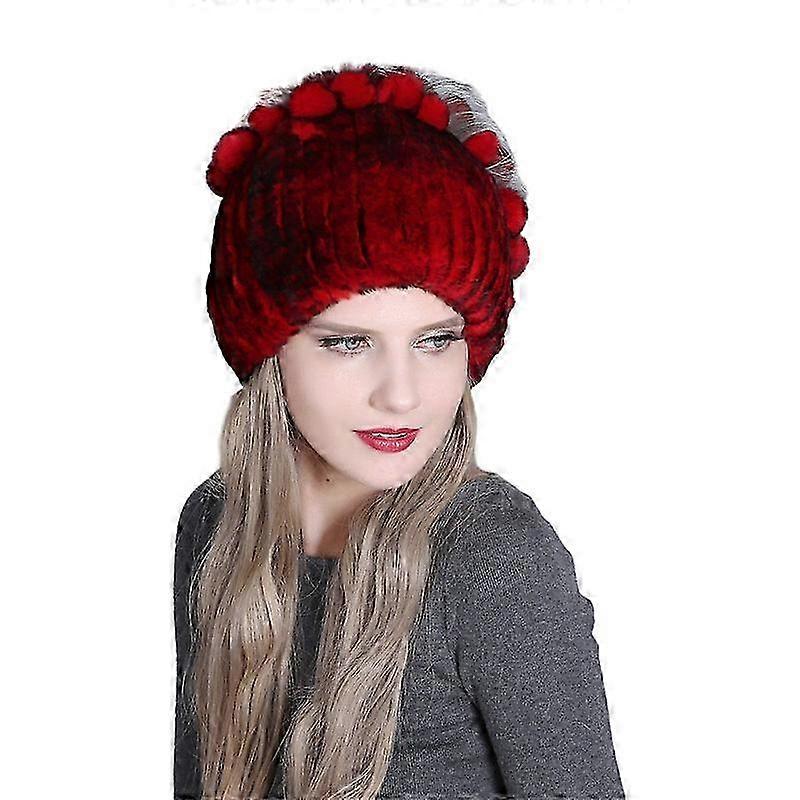 MIMIGO Vertical Stripes Handmade Knit Hat Winter Women Fur Hats Natural Rex Rabbit Fox Fur Cap Female Fur Headwear Elastic Warm Beanies