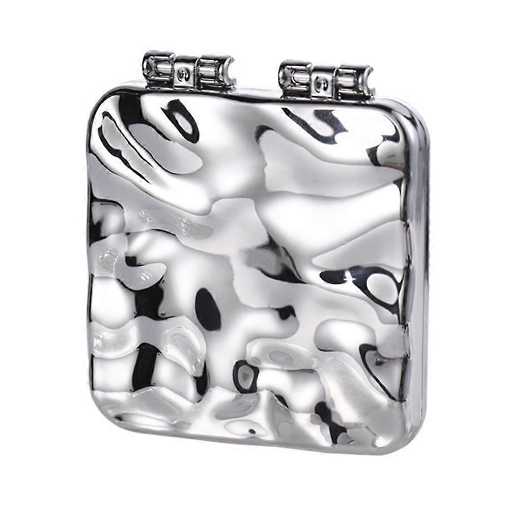 Mini Portable Double-sided Makeup Mirror Handheld Foldable Mirror-Electroplating Silver