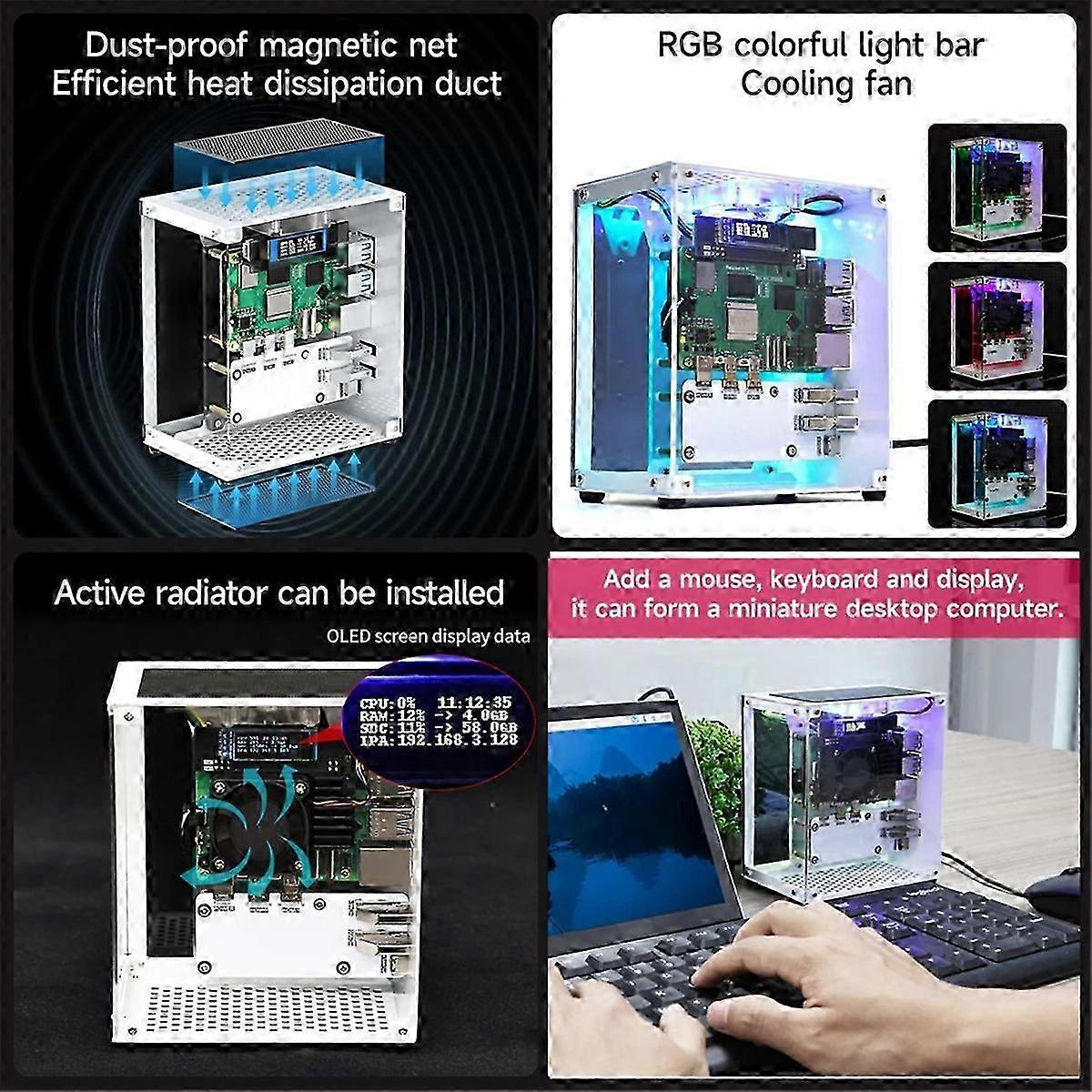 Mini Tower PC Case for 5 Case, Micro-Type with Active Cooler, PWM Fan & RGB Lighting Bar