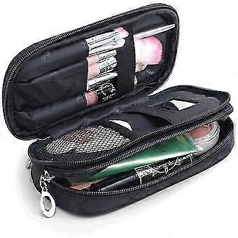 Mlmsy حقيبة ماكياج مع مرآة عقد فرش المهنية متعددة الوظائف 2-طبقة مستحضرات التجميل المنظم للنساء، أسود