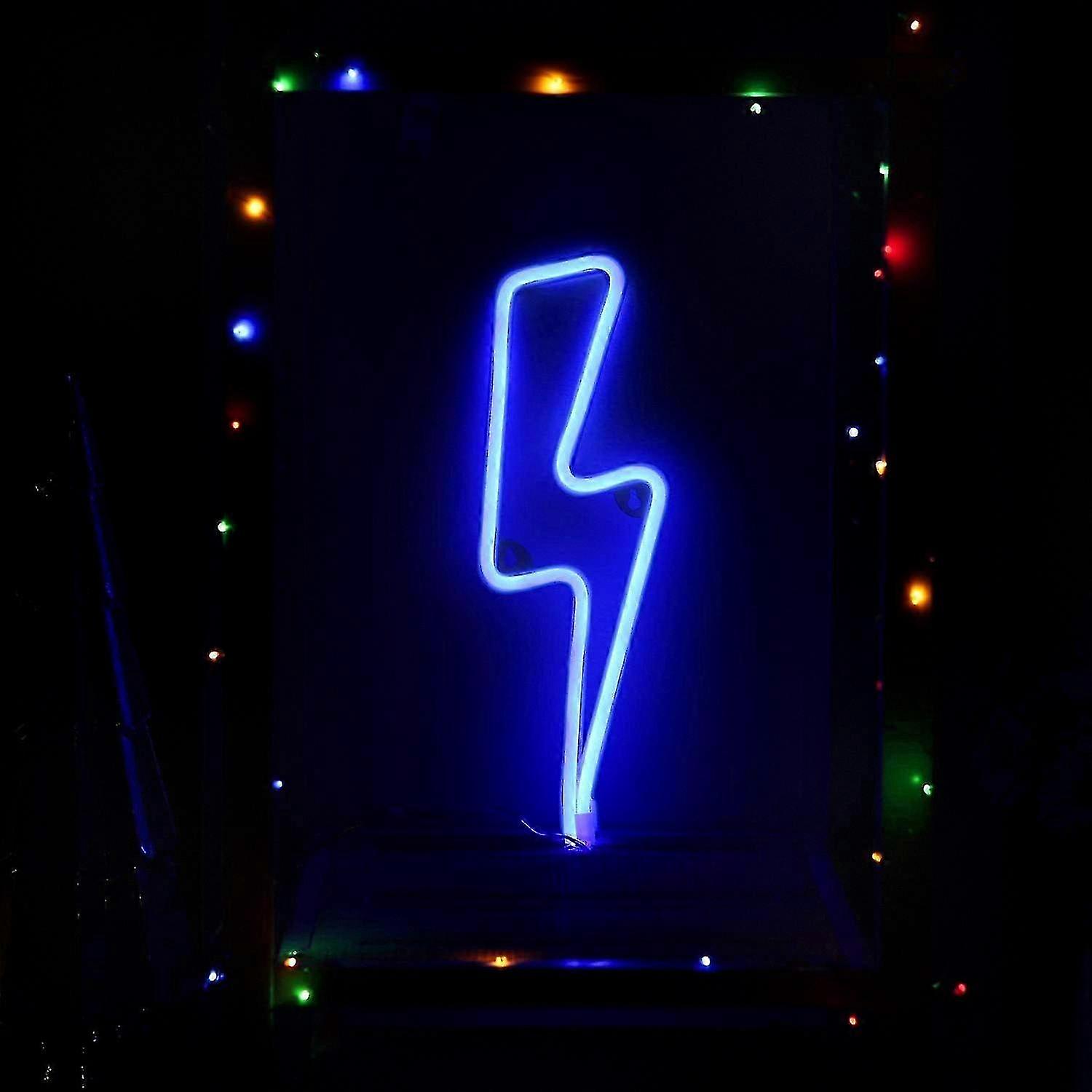 Modern Neon Wall Light with Blue Lightning Design - Battery and USB Powered LED Decorative Lamp