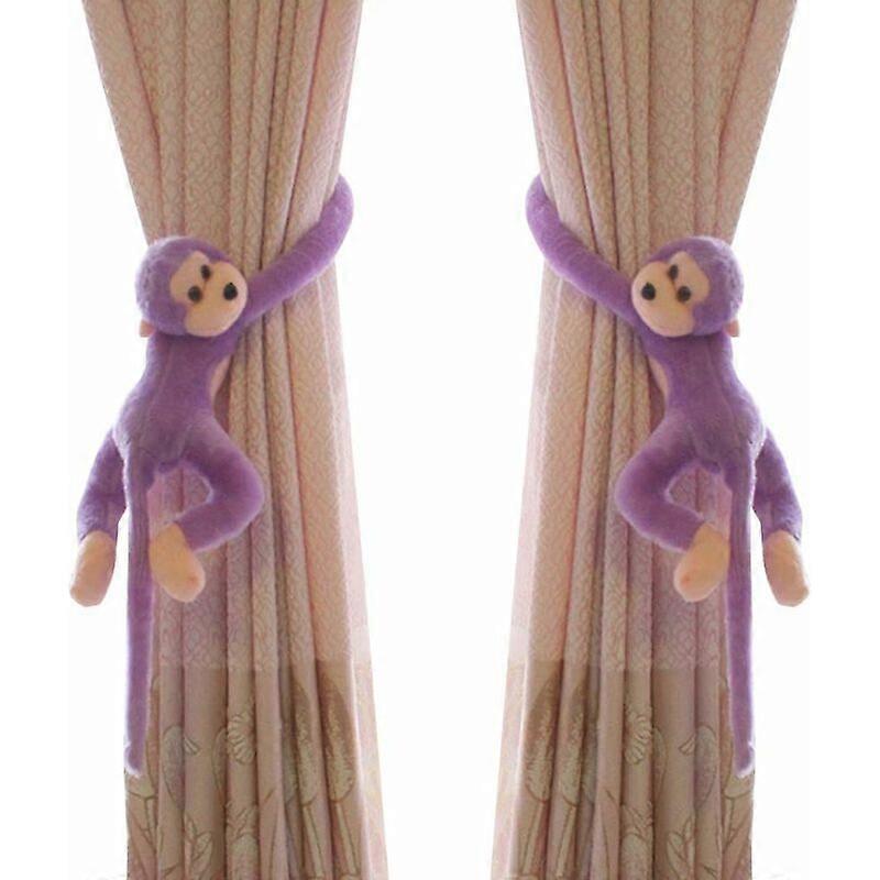Monkey Patterned Curtain Tiebacks for Nursery - 2-Pack - Purple