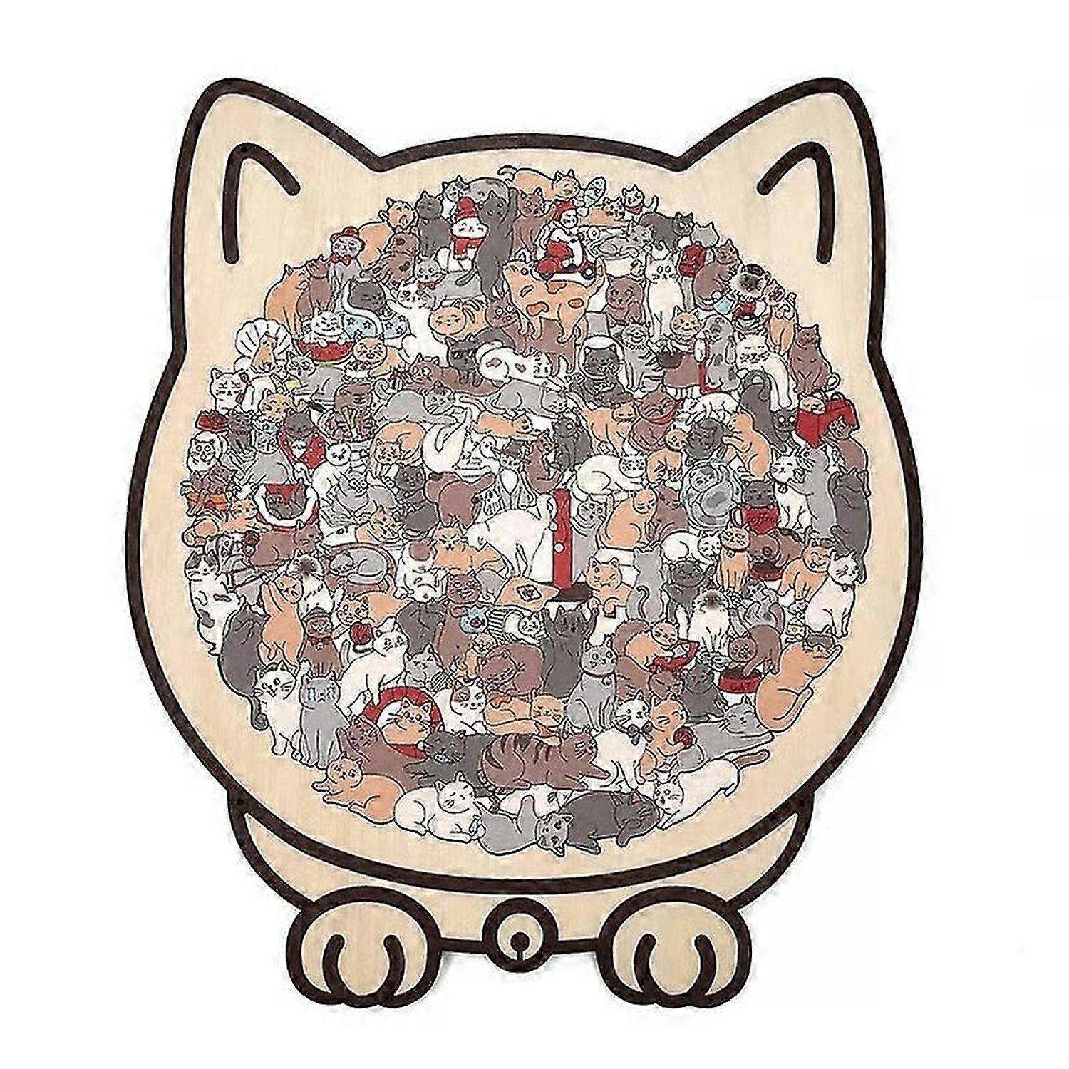 Morandi-Colored Cat Shaped Wooden Jigsaw Puzzle