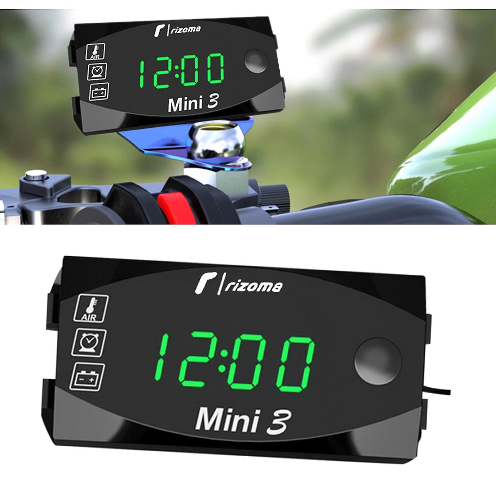 Motorcycle Time Clock Thermometer Voltage Voltmeter Waterproof 6V-30V green