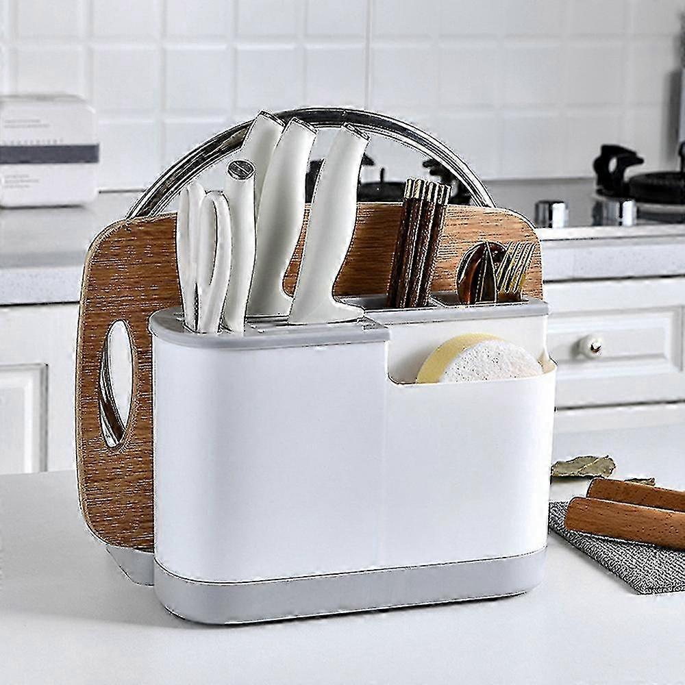 Multifunctional Knife Block & Cutting Board Storage Rack, Plastic Kitchen Organizer, Black 2025