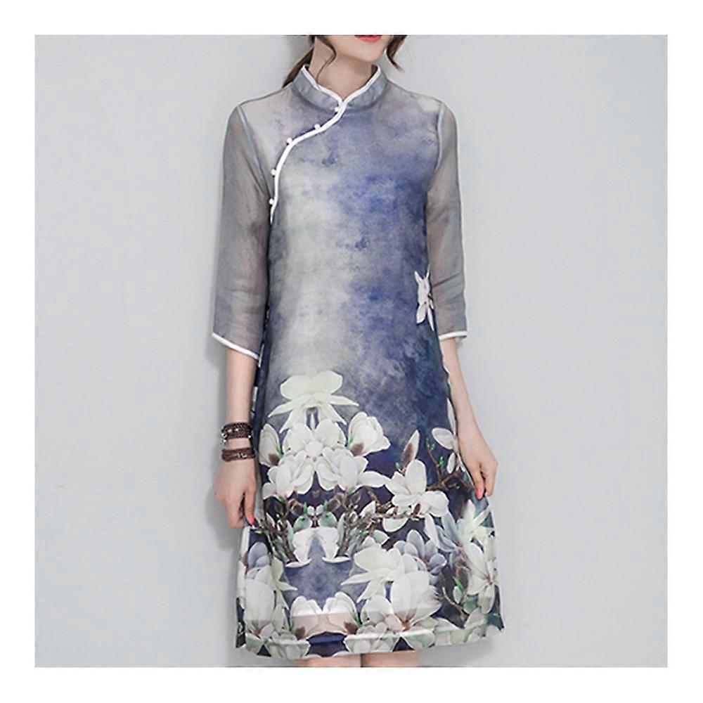 National Style Fifith Sleeve Roformed Cheongsam DressTraditional pearl plate button adds temperament;half sleeve hides redundant complexion;slant open