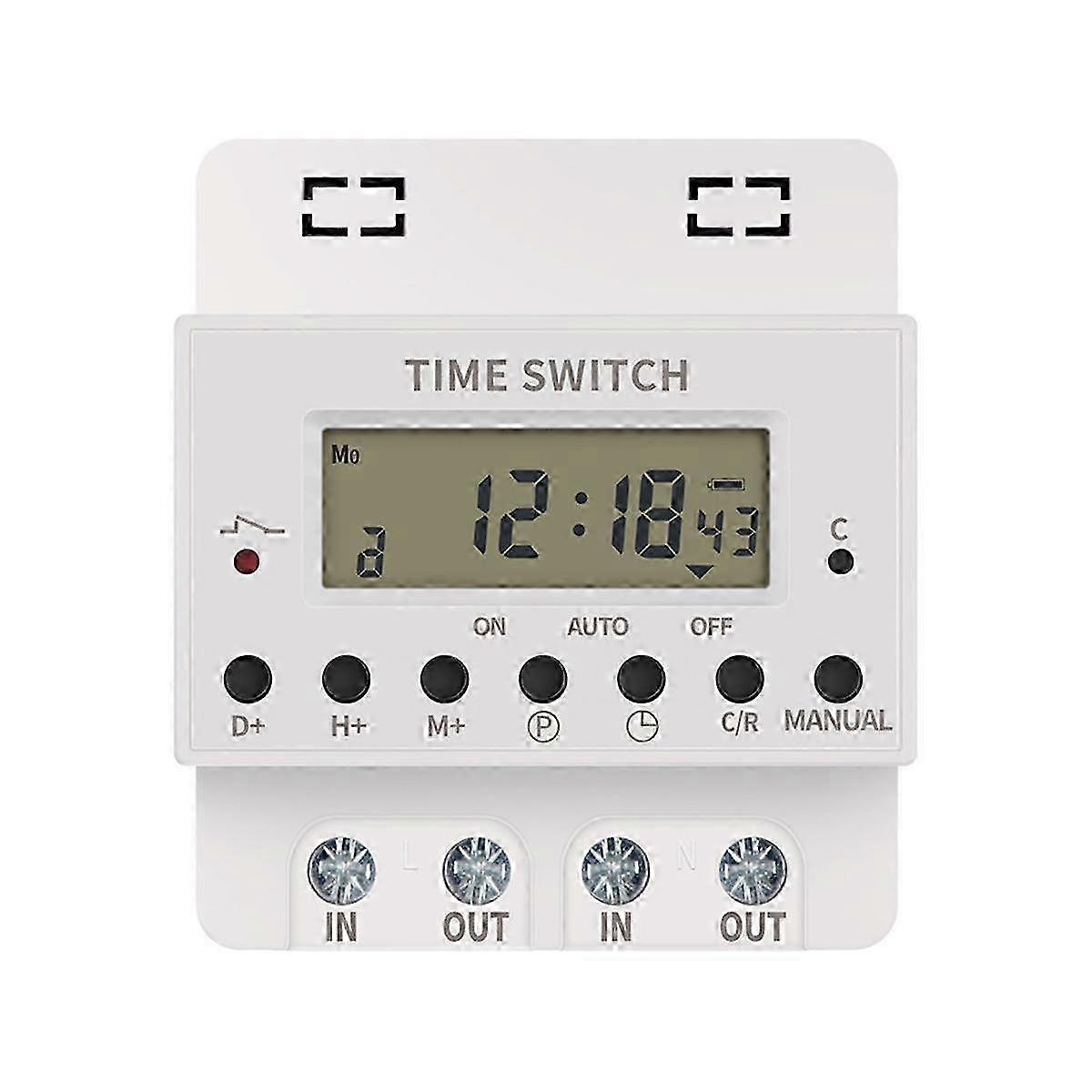 High-power switch, can directly load 6 kilowatt motors, 28 sets of settings, 168 hours of long time setting, 1s short time setting Timing switch automatic time controller, programmable Automatically open and close, no manual required. For example, open at 7pm and close at 8am, cycle every day LCD display, large screen display, clear values and easy to read, easy to use buttons Line interface, simple and practical. Wall-mounted and rail-mounted installations are more convenient and faster Product name: Battery: Built-in lithium battery Cr2032 Power Supply: Wiring Item number: KT029 Model: KG316T Power supply voltage: 220 (V) Power consumption: 1.5va (W) Application range: -30-80 Colour:As Shown Material:pc Package Contents: 1 * 1 * English instruction manual Only the above package content, other products are not included. Note: Light reflection and different displays may cause the color of the item in the picture a little different from the real thing. The measurement allowed error is +/- 1-3cm.