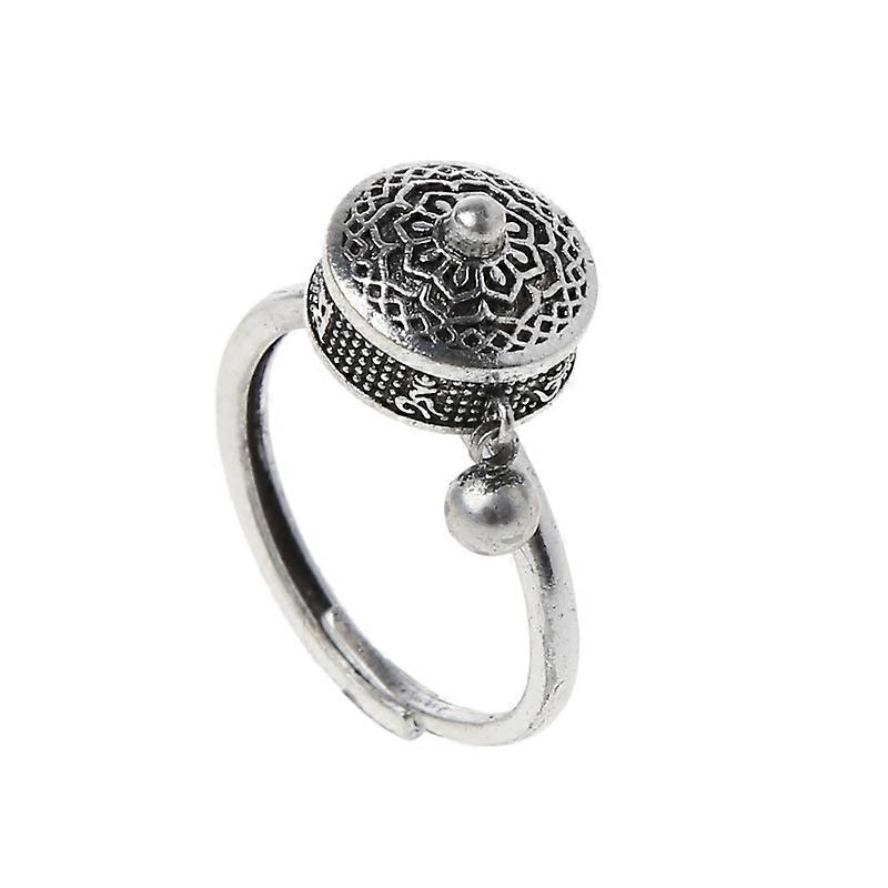 OM Mantra Lotus Floral Rotating Ring Adjustable Finger Ring Prayer Wheel Rings