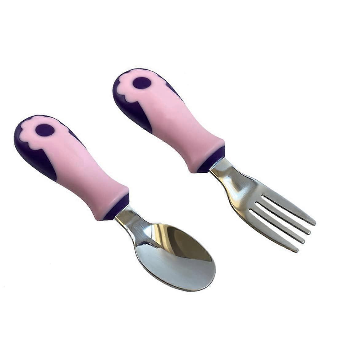 Pair of children's forks and spoons suitable for one year old children set, safe and easy to use.