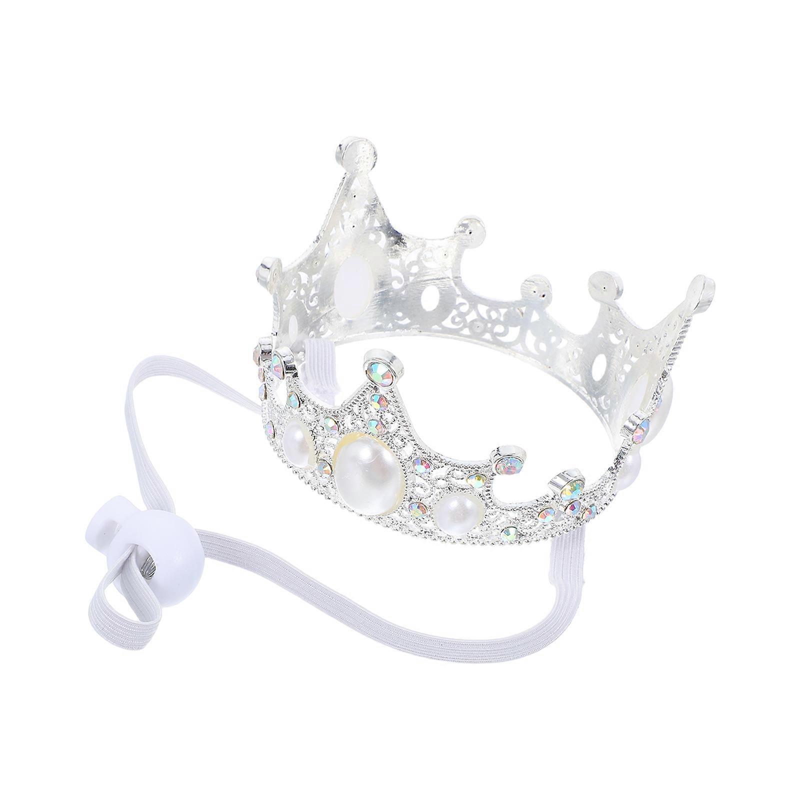 Pet Crown with Adjustable Strap for Festive Events Silver Alloy