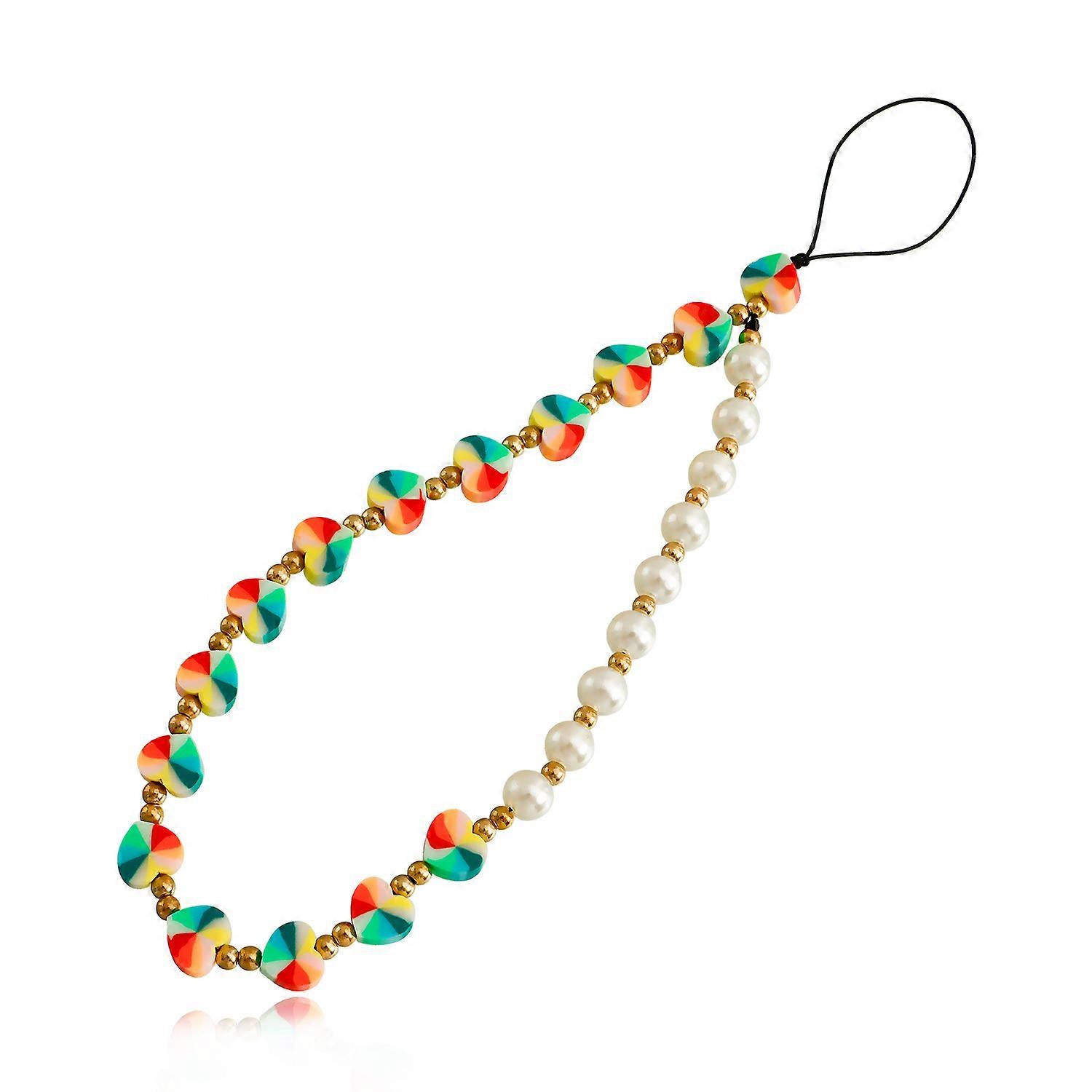 Phone Chain, Handmade Braided Faux Pearl Color Block Fresh Colorful Heart Simple Lanyard