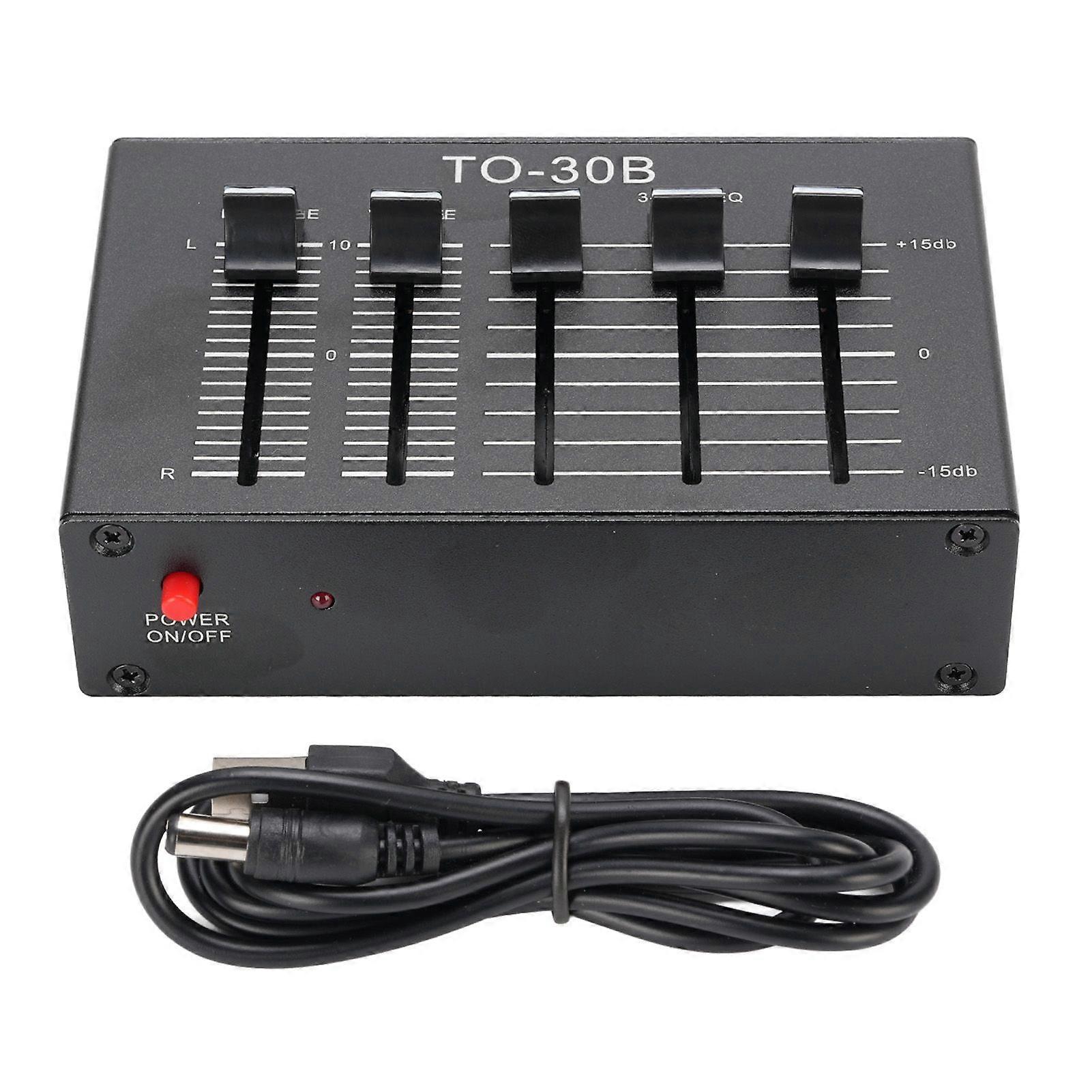 Phono Preamp EQ 2 Channel Digital Sound Equalizer 3 Band 12dB High Mid Low Tone Adjustment Balanced Volume Control 5V Adapter for Record Player