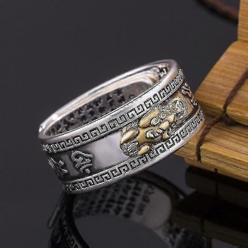 Pixiu Charms Ring Bracelet Set For Women Men Chinese Feng Shui Amulet Wealth and Lucky Jewelry Set Adjustable Ring Bead Bracelet