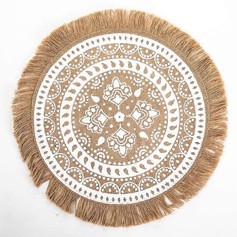 Description: This placemat is designed with an embroidered pattern, so striking and delicate, it can be used as a beautiful photo prop to decorate a dining table. What this exquisite placemat can offer you is a Nordic style, not only suitable for your table decoration, but also as a warm handicraft for your family, friends, colleagues. Made of cotton linen, this product is very delicate and durable. This placemat is 38cm in diameter and has 6 different styles for you to choose from. It is suitable for kitchen, bar, party, etc. Project name: placemat Material: Cotton Linen Features Package includes: 1 x Floor Mat