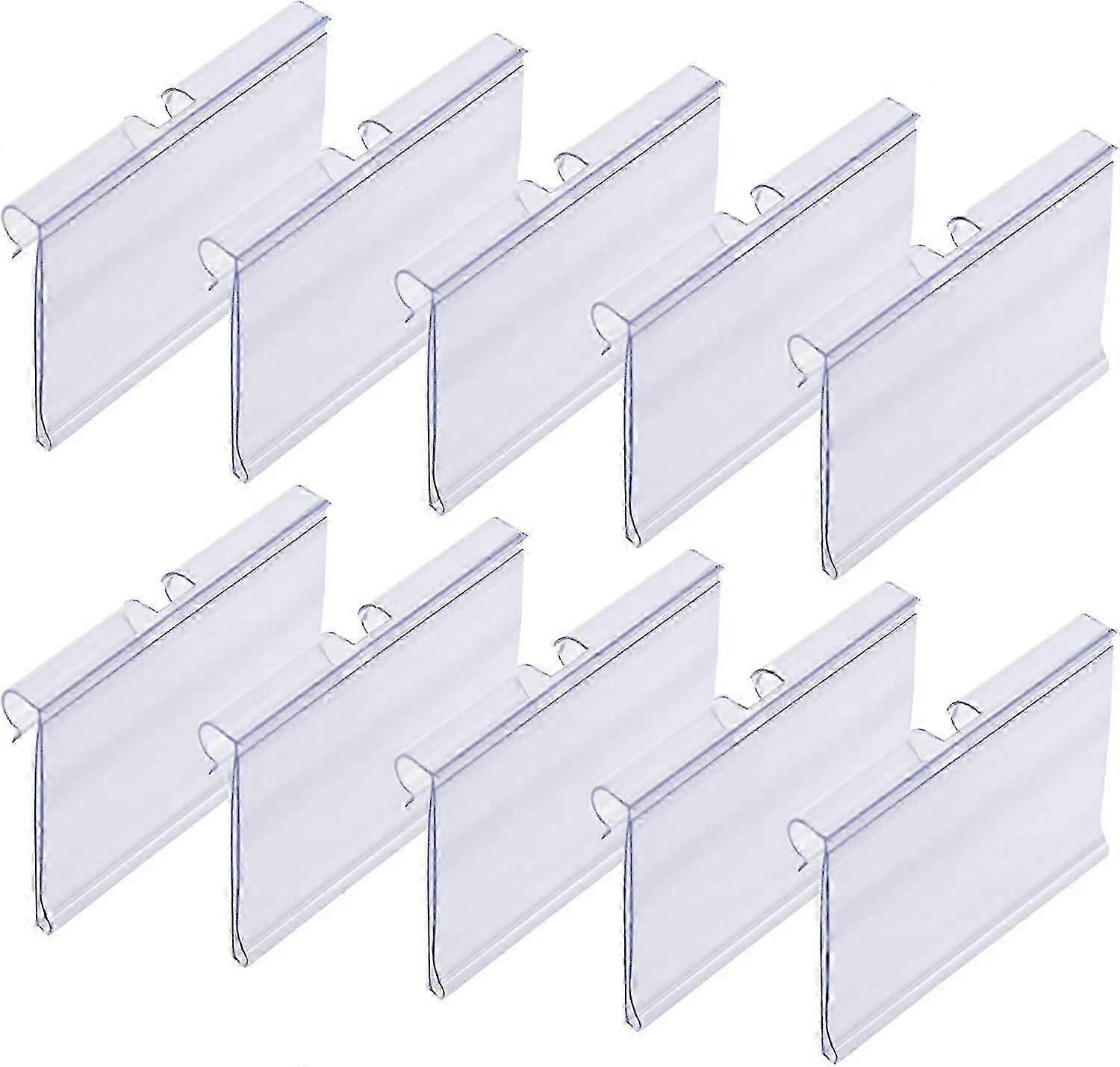 Package includes:50 Pcs Clear Plastic Label Holdernot include label paper; Easy use design. Great quantity for product sale use. these labels are a little soft that are convenient for insert the price tag Product size (L x W): 2.4x1.57 inches/6x4 cm; Color: clear; Material: PVC plastic, which is sturdy and not easy to break, you can clip on and take it down easily, very convenient for your daily use. These label holders for storage bins are suitable for supermarket and store to use Widely use: The plastic label holder can work for fabric bin labels, bin labels, labels for storage bins, to display market merchandise price, product merchandise sign display and texts advertisement, also suitable for personal tagging items, with clear appearance, there will be a good visual effect Easy to apply and install: You just have to attach price information or other informational paper on this label, and then hang the label in front of the product to display your product perfectly Size:60*42mm Package Included:50Pcs*Plastic Label Holders
