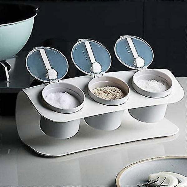 Plastic Spice Jar with Spoon Seasoning Box Set, Creative 3 Grid Combination Spice Jars Pepper Shaker Storage Box (color: gray)