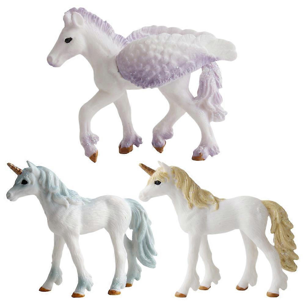 Plastic Unicorn Simulation Figurines Realistic Models for Decor 3Pcs Set