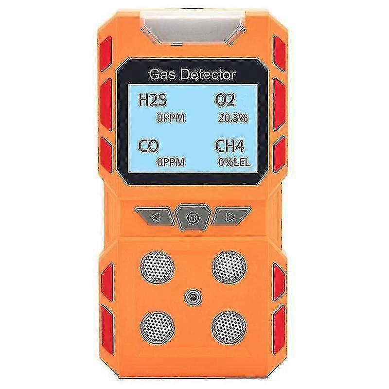 Portable 4 Gas Detector with Sound, Light, Vibration, Rechargeable LCD