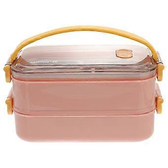 Portable Lunch Box Container Double Layer Meal Container Home Use Pink 19.5X11.5X11cm Heat Retention 1Set