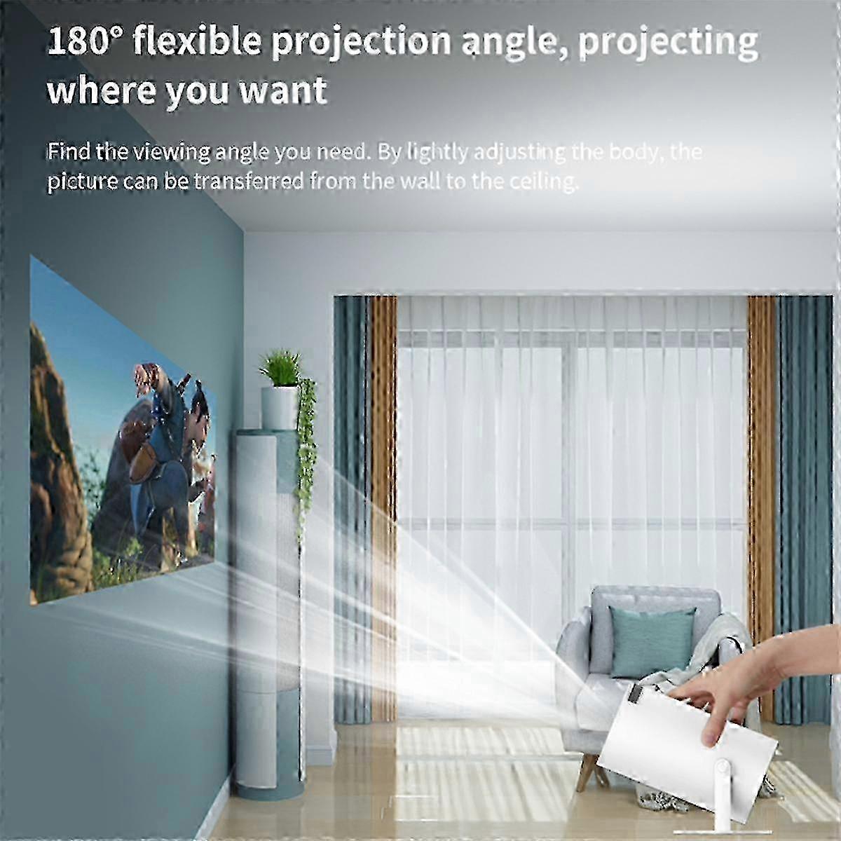 Integrated with Android TV 11.0: No need for external devices, thanks to the in-built Android TV system. You can now flawlessly stream online and run apps from , Prime Video, , and more, providing an endless entertainment hub with high- ease and convenience. 9000Lux Brightness with 4K Resolution Support: Designed to provide superior image quality, the projector supports up to 4K resolution. The strong 9000lux brightness ensures crystal-clear images leading to an ultimate audio-visual feast for all viewers. Rotatable Projection & Automatic Correction: Crafted for flexibility, the projector features 180 rotation and multi-angle projection image support. The 3-second quick automatic image correction eliminates the need for bracket installation and makes it suitable for all room setups. 5G WiFi Bluetooth Connectivity: Prioritizing wireless ease, this projector supports 5G WiFi and 2.4G WiFi screen projections. Pair it with your preferred Bluetooth speaker to create a theater-like audio-visual experience at your convenience.USB Phone Projection Feature: equipped with a USB interface, allowing Android and phone screen mirroring. Project your phone screen effortlessly without needing WiFi, enabling mobile entertainment anytime, anywhere. Due to size limitations, the projector's image quality is native 720P, supports up to 4K images.9000LM brightness - the picture display in a dim environment is that in a bright environment, and the picture display in a close-range projection is that in a long-distance projection.Best viewing experience - In a darker environment, the 6.5-foot projection distance can display an 80-inch projection screen Core parameters Native:1280x720 --720P(HD) Max:4K Brightness:9000 Color uniformity:85% Powerful picture quality, multiple picture corrections, adaptability to different projection environments, bringing a good viewing experience. Screen correction function: The screen is adjusted according to the projection angle and can be rotated up to 180. Automatically follow the projection angle to vertically correct the picture. Support manual electronic four-point correction. Supports screen scaling 100%-50% (without moving the projector) Updated market research, designed according to people in different living environments, with unique rotating shape and automatic screen adjustment, making it easier to use. 2.4G/5G WiFi Projector: The projector supports a 2.4G/5G WIFI connection for wireless projection. With simple operations, the projector and mobile phone can be connected to the same WiFi environment to project and enjoy a big-screen experience easily. Connect the projector to your home network. Plug Type: US Plug, it applies to Canada, India, Mexico, Thailand, Taiwan, the , the Philippines and so on. Voltage: AC110V Colour:White Material:ABS Package Contents: 1 x Projector 1 x Remote Control 1 Cord Only the above package content, other products are not included. Note: Light reflection and different displays may cause the color of the item in the picture a little different from the real thing. The measurement allowed error is +/- 1-3cm.