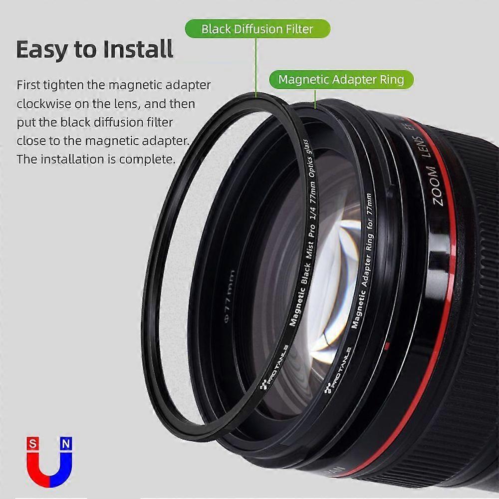 PRO TANLE 77mm Black Diffusion 1/8 Filter Black Mist Cinematic Effect Filter Multi-layer Coating with Magnetic Adapter Ring for Video Vlog Portrait
