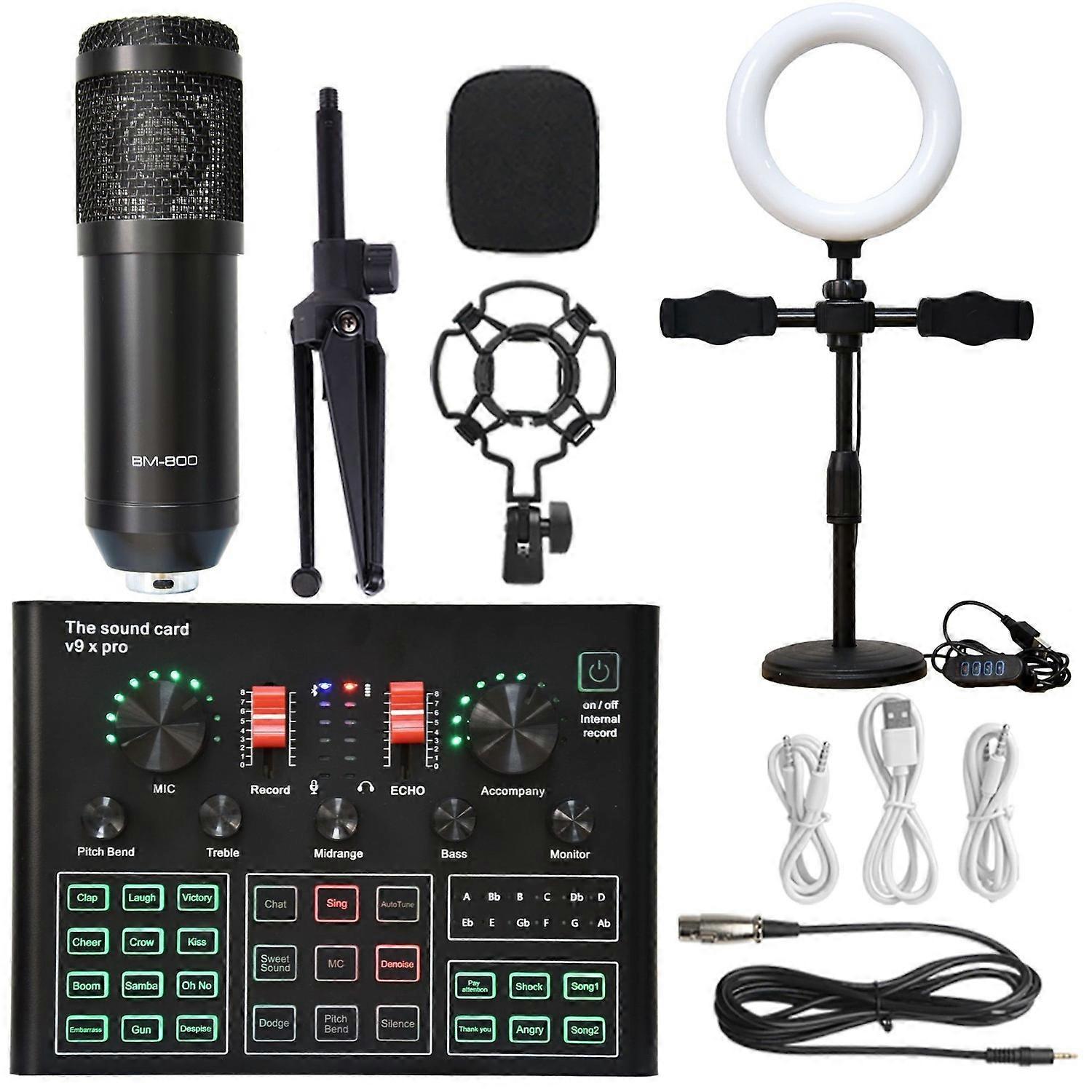 Professional tuning studio sound card Black microphone live sound card set with fill light
