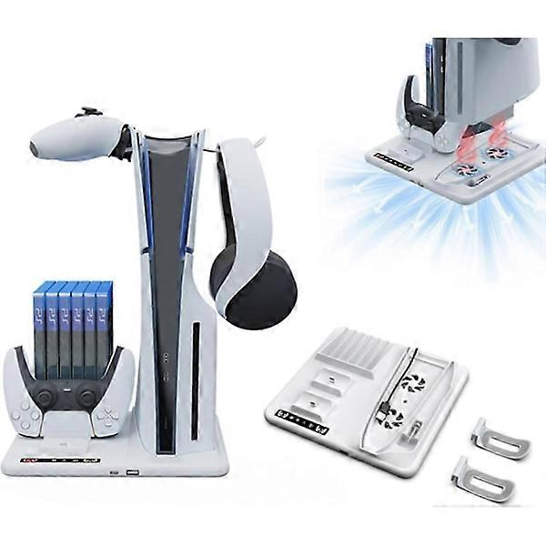 PS5 Slim Stand and Cooling Station with Dual Controller Charging Dock, Compatible with Playstation 5 Slim Console