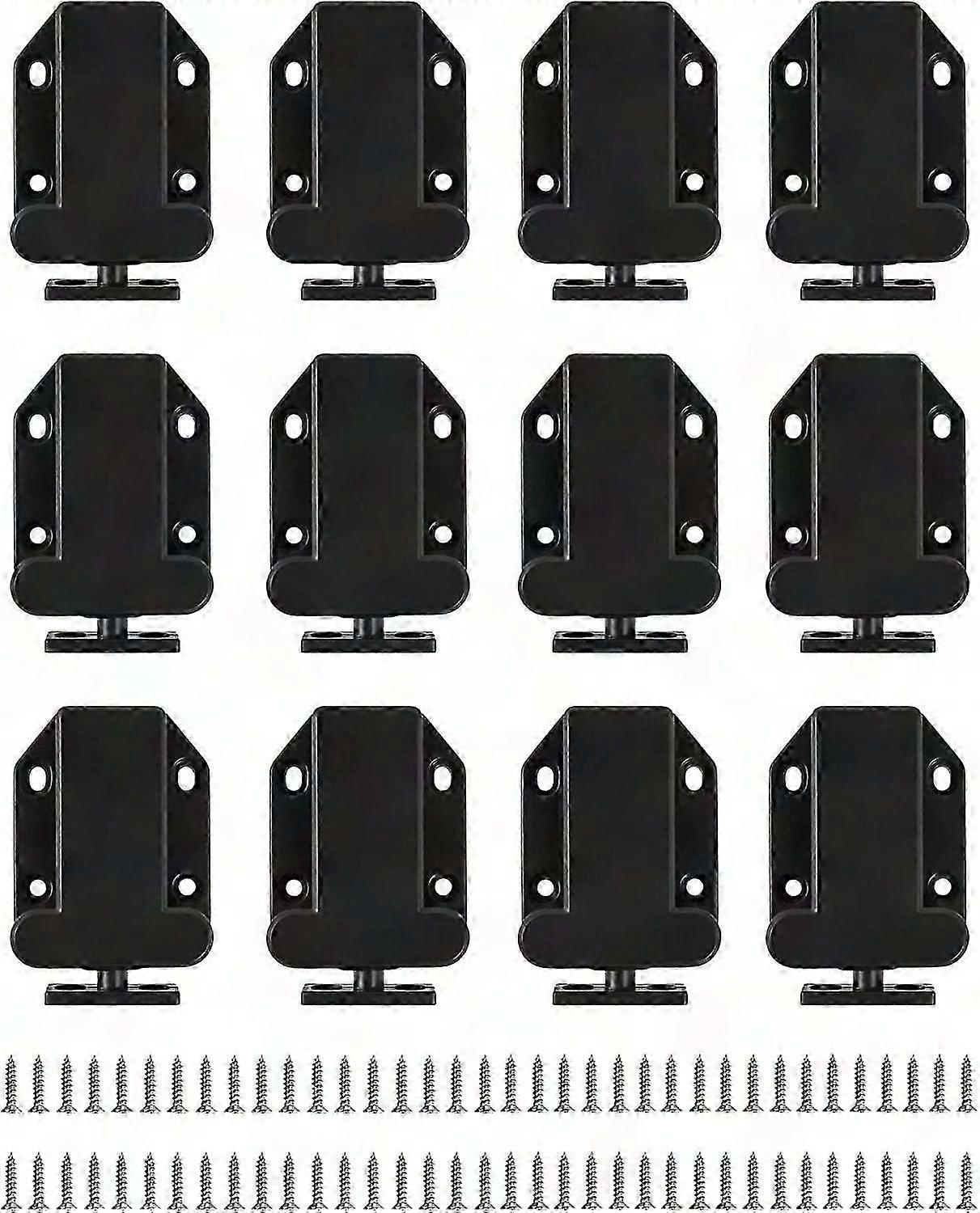 Push to Open Cabinet Lock with Auto Pop-Up, Touch Release Catch Latch for Cupboard Drawer, 12 Pack Black