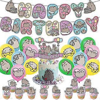 Pusheen Theme Birthday Party Supplies Banner Balloons Kit Cake Cupcake Toppers Decorations Set 2025