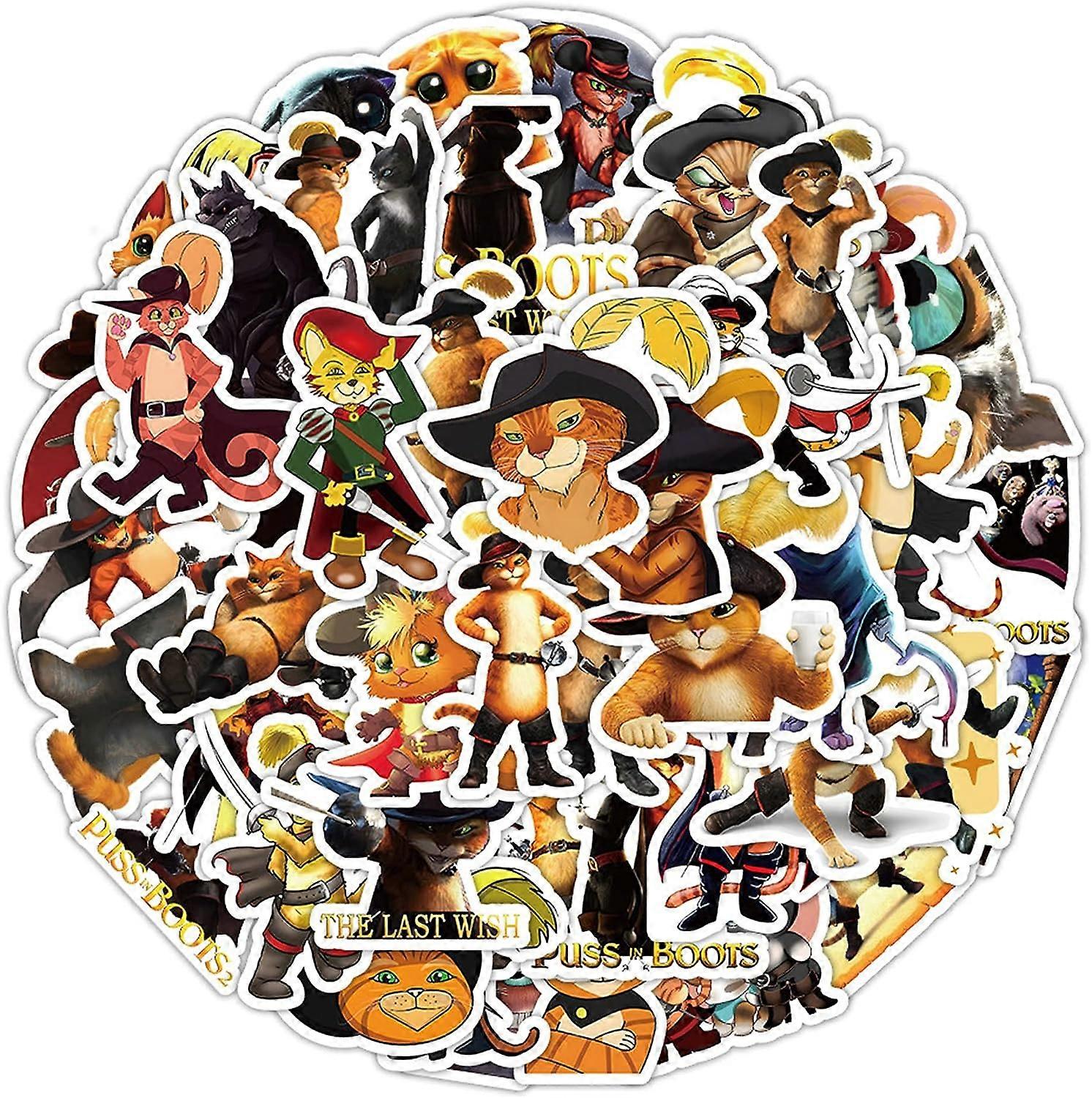 Puss in Boots Stickers 50PCs Aesthetic Movie Stickers, Vinyl Waterproof Decals for Laptop, Water Bottle for Kids,Teens,Girls,Cute Cool Car