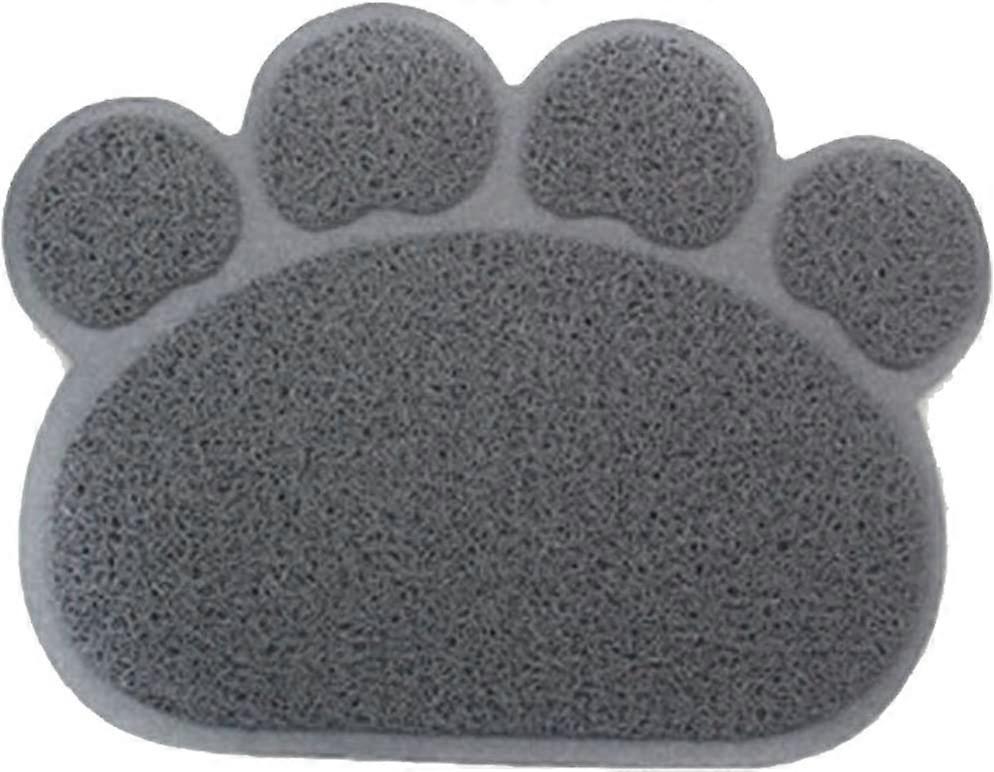 PVC Pet Dog Cat Puppy Kitten Dish Bowl Food Water Placemat Mat Paw Shape (Grey)