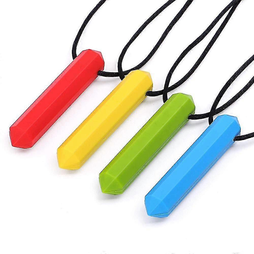 Pxcl 4 Pieces Chew Necklace Best Chew Necklace For Kids With Autism Durable And Strong Silicone Chew Necklaces - Chew Pendant For Boys And Girls