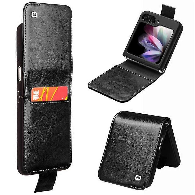 QIALINO Compatible For Samsung Galaxy Z Flip5 5G Genuine Cow Leather+PC Phone Case Card Holder Slim Fit Cover
