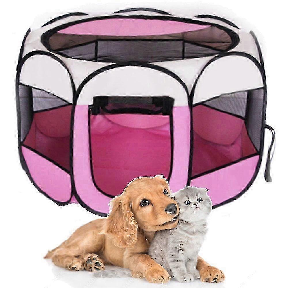 The Portable Pet Playpen is a versatile and convenient solution for pet owners. The foldable pop-up dog kennel tent can be used both indoors and outdoors, made of durable and breathable mesh fabric with a zippered door for easy access. Its lightweight design makes it easy to transport and set up in minutes, perfect for travel, camping, or everyday use. Give your furry friends a safe and comfortable space to play and rest while on the go with this portable playpen. PET FRIENDLY AND SAFE: 8 side-panels form a circular shape, puppy play pen is composed of high-grade thick mesh and scratch-resistant Oxford cloth. These pet playpens feature 360 degree view of sunview, designed with spacious interior, well-ventilated , mesh roof to make sure that your pet doesn`t feel anxious. the pet can see everyone thru the mesh and does not feel so closed in. make your puppy feel safe in it. CONVENIENT: This dog playpen also features a mesh zippered entrance along the side ,zippered door provides easy in/out access for your pet. Close the door to keep your pet safely inside. you can fasten the door open with the attached Velcro. with the top zipped off you can reach in and handle the pet.soft pet playpen also features a handle bar for dragging purposes, lightweight easy carry .The pet playpen keeps your pets safely with you while at the park, beach, and inside or outside your home. POP UP PLAYPEN: assembly required, sets up in seconds and requires assembly; folds flat when not in use for easy carrying and storing. dog playpens for the house on hardwood floors,foldable pet playpen?lightweight yet strong,can be used indoors or outdoors?camping. The portable design makes it a perfect choice for travel.bulky and heavy crates are a thing of the past! EASY AND FUN: Enclosure pup tent, the spacious interior gives your pet room to play or sleep. Breathable material make pet so comfortable , you can put a mat/blanket in the playpen, Keep your pet comfortable. our playpen available in multiple sizes and colors. DIMENSIONS: 29"L x 29" W x 18 "H (S);Recommended for cats, extra-small and small sized dog breeds. puppy, rabbits, ferret?guinea pig, etc. suitable for pregnant cat,cat mama and kittens,suitable for injured pet that was on strict activity restriction. It has plenty of space, easy to move around.you can place with peed pads and thick blanket inside.?Not suitable for naughty pets with excessive teething or destructive chewing behavior. PET FRIENDLY AND SAFE: 8 side-panels form a circular shape, puppy play pen is composed of high-grade thick mesh and scratch-resistant Oxford cloth. These pet playpens feature 360 degree view of sunview, designed with spacious interior, well-ventilated , mesh roof to make sure that your pet doesn`t feel anxious. the pet can see everyone thru the mesh and does not feel so closed in. make your puppy feel safe in it. CONVENIENT: This dog playpen also features a mesh zippered entrance along the side ,zippered door provides easy in/out access for your pet. Close the door to keep your pet safely inside. you can fasten the door open with the attached Velcro. with the top zipped off you can reach in and handle the pet.soft pet playpen also features a handle bar for dragging purposes, lightweight easy carry .The pet playpen keeps your pets safely with you while at the park, beach, and inside or outside your home. POP UP PLAYPEN: assembly required, sets up in seconds and requires assembly; folds flat when not in use for easy carrying and storing. dog playpens for the house on hardwood floors,foldable pet playpen?lightweight yet strong,can be used indoors or outdoors?camping. The portable design makes it a perfect choice for travel.bulky and heavy crates are a thing of the past! EASY AND FUN: Enclosure pup tent, the spacious interior gives your pet room to play or sleep. Breathable material make pet so comfortable , you can put a mat/blanket in the playpen, Keep your pet comfortable. our playpen available in multiple sizes and colors. DIMENSIONS: 29"L x 29" W x 18 "H (S);Recommended for cats, extra-small and small sized dog breeds. puppy, rabbits, ferret?guinea pig, etc. suitable for pregnant cat,cat mama and kittens,suitable for injured pet that was on strict activity restriction. It has plenty of space, easy to move around.you can place with peed pads and thick blanket inside.?Not suitable for naughty pets with excessive teething or destructive chewing behavior. Note: Due to the light and screen setting difference, the item's color may be slightly different from the pictures. Please allow slight dimension difference due to different manual measurement. Sold by-Dadangjia