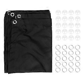 UNIQUE DESIGN: suction cup curtains use 20 silver rings on four edges for suction cups. More strong Suction cups and rings make the curtain hard to fall. EASY TO INSTALL: By of sucker sticking without any messy sticker or glue to damage your window ( pictures or package instructions). EASY TO ADJUST: Suction cups allow you to adjust the width and length of blackout blind drapery, suiting for glazed / glass windows, sliding door, proof window. AMZING MATERIAL: advantage from the triple weave , the curtain can block 80-95% sunlight and UV ray, features on thermal insulated, noise reducing, privacy protection. blackout curtains with suction cups your peaceful environment. Used for the roof window / dormers can block the direct light . You can also use the suction cups to adjust the curtains. Keep the room cool in summer and warm in winter. The suction cup's diameter is 4 cm.Test it , weight test to 8 lbs. Can hold the curtain ,'t worry about the suction. TIPS:The suction cup you received may be bent due to packaging transportation. Pour boiling water into the bowl, the suction cup for 5-6 minutes, dry and use. The blackout curtains have a good shading effect .When you are traveling,can easy to carry it . colour:black Material:Polyester size:198*130cm Package Contents: 1 * Curtain 20 * suction cups 20 * rings Only the above package content, other products are not included. Note: Light and different displays may cause the color of the item in the picture a little different from the real thing. The measurement allowed error is +/- 1-3cm.