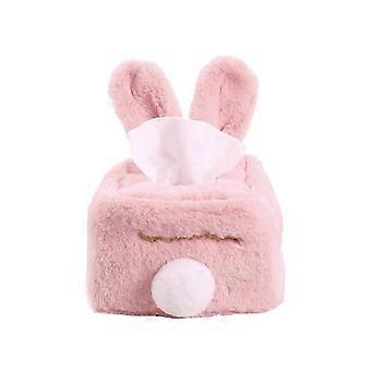Rabbit Ear Tissue Box Plush Napkin Storage Container Convenient Paper Towel Organizer for Home Bar Office (Pink Square)
