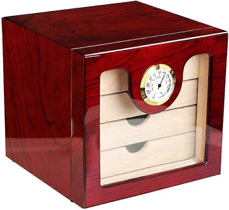 Red Cedar Cigar Humidor 50 Cigars with FourTier Storage and External Humidifier for Home